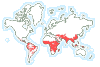 They show approximately where malaria is present globally and are not bad as a rough guide. They are being continually updated as better information on the distribution of malaria is collected.