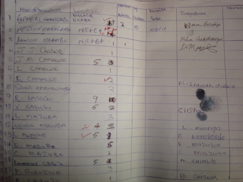This distribution was the 2nd of 3 phases to distribute nets over the entire district of Chikumbi to ensure all 13 villages had every sleeping space covered in a fight to eradicate or drastically reduce the impact of Malaria. Each of the 3 villages had provided a census of their population and their sleeping spaces.