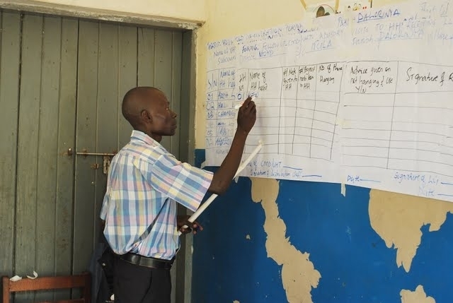 Surveys take place 6, 18, 30 and 42 months post-distribution. A survey of 50 households provides sample information on what proportion of nets continue to be used, if they are used correctly and the state of the nets.