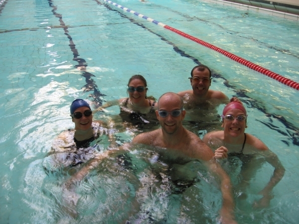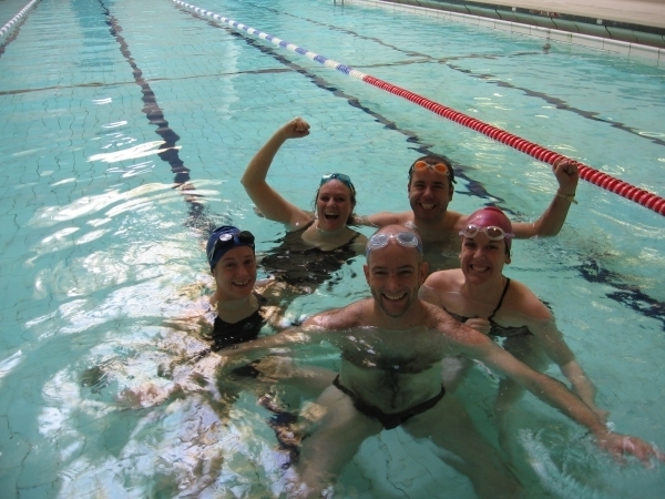 With a number of potential contenders out due to illness, we were down to a team of true professionals including Sophie (nice cossy!), Kate (built for speed), Eva (a swimming machine with the bubba in the tummy giving support), William (pretty boy who gave it his best shot against Kate) and JB (carrying far more kgs than in the old days). The conditions were perfect. The sight of JB in swimmers cleared a majority of people from the public lanes at the Porchester Centre and we were off.