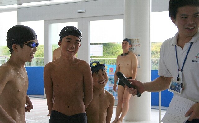 13:45 模範泳法, リレー対決(柴田さんは100mを1人で泳ぎます)