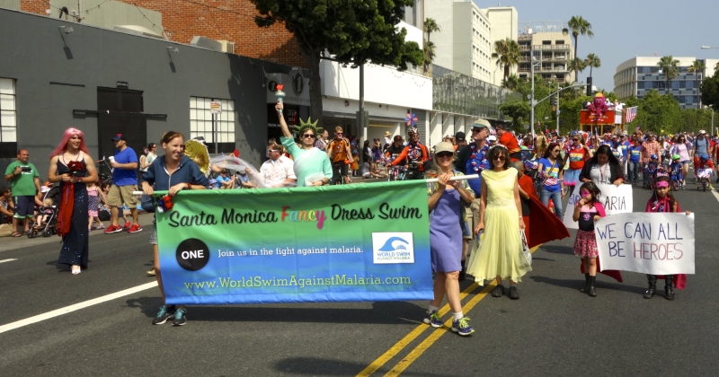 Looking for a way to make a difference on World Malaria Day, April 25, and beyond? Here it is! Sponsor us! Join us. This year our Fancy Dress Swim, continuing our 8th Annual participation in the Santa Monica 4th of July Parade, is linking arms with the United Methodist Church's Imagine No Malaria to expand our reach to end malaria. The parade route ends at the beach but we keep parading into the ocean.    more >>