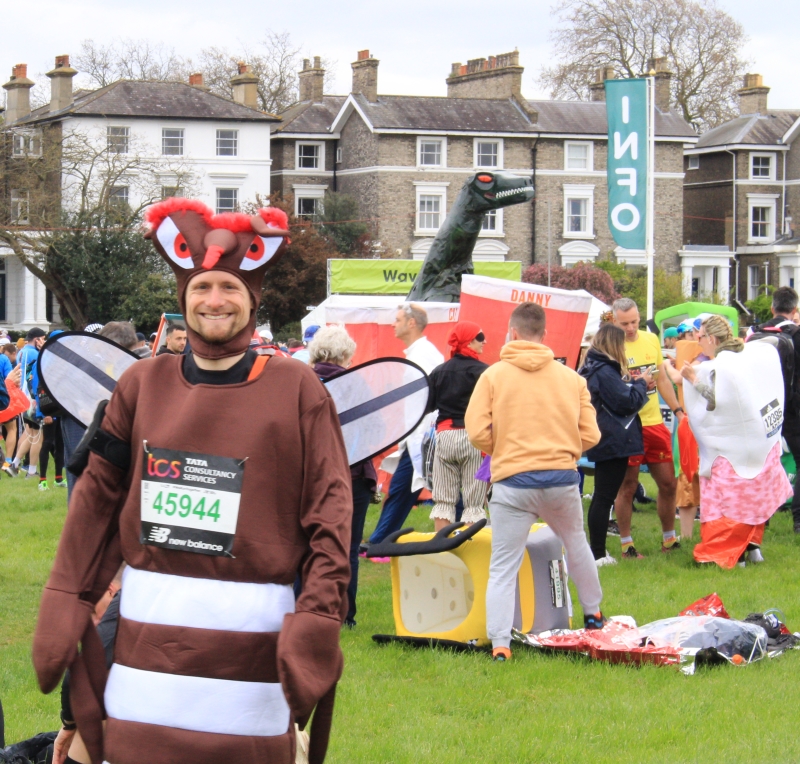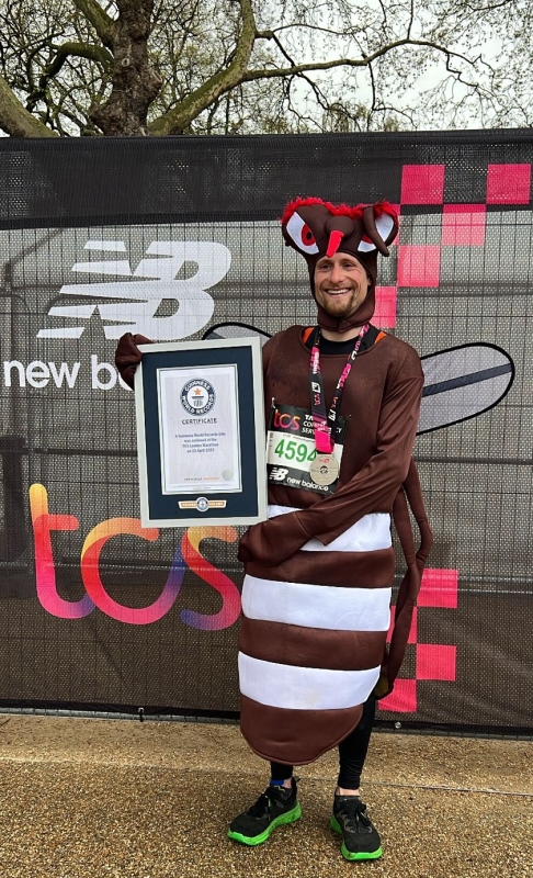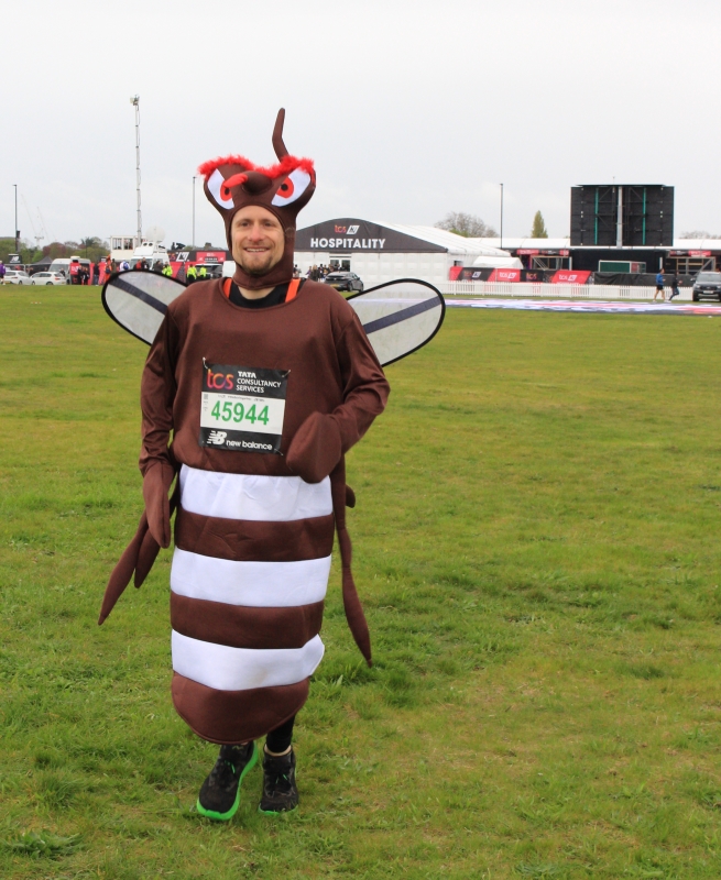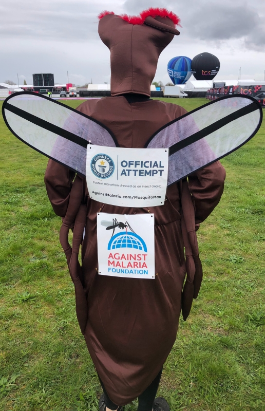 Impressed is an understatement. I'd collapse on floor after the 1st 5 miles so can't imagine running 26 miles dressed in a full body costume. You'll swat the Guinness world record and infect people with your determination. Good luck but I don't think you'll need it. You've netted this David!
